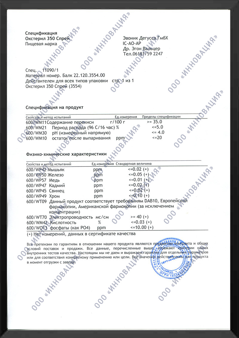 Мы производители, поэтому предлагаем перекись водорода своего производства. Являемся официальными дистрибьюторами известных международных компаний. У нас всегда есть в наличии перекись водорода европейского качества.